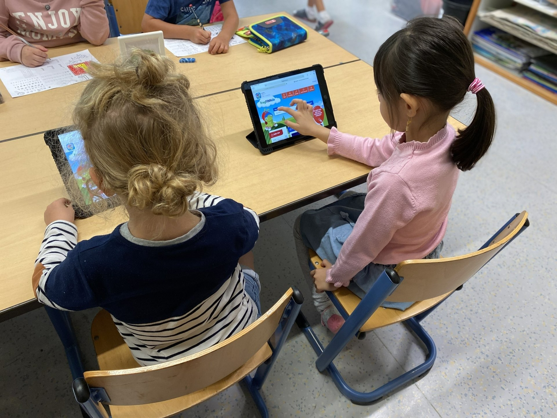 Im Mai und Juni besuchen die zukünftigen Erstklässler*innen mit ihren Kindergartengruppen die jetzigen ersten Schuljahre, um zum ersten Mal Schulluft zu schnuppern und die Schulatmosphäre kennenzulernen.
